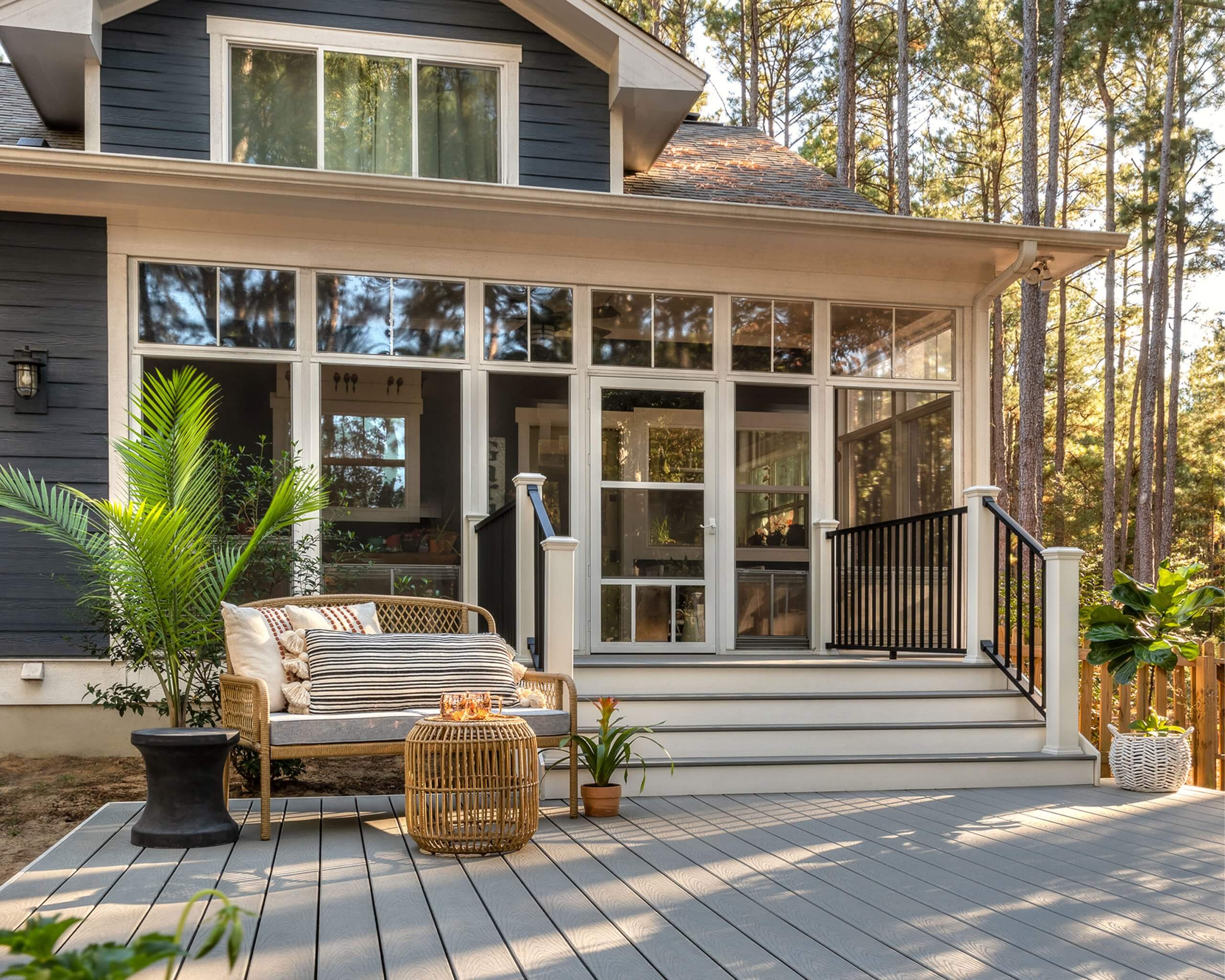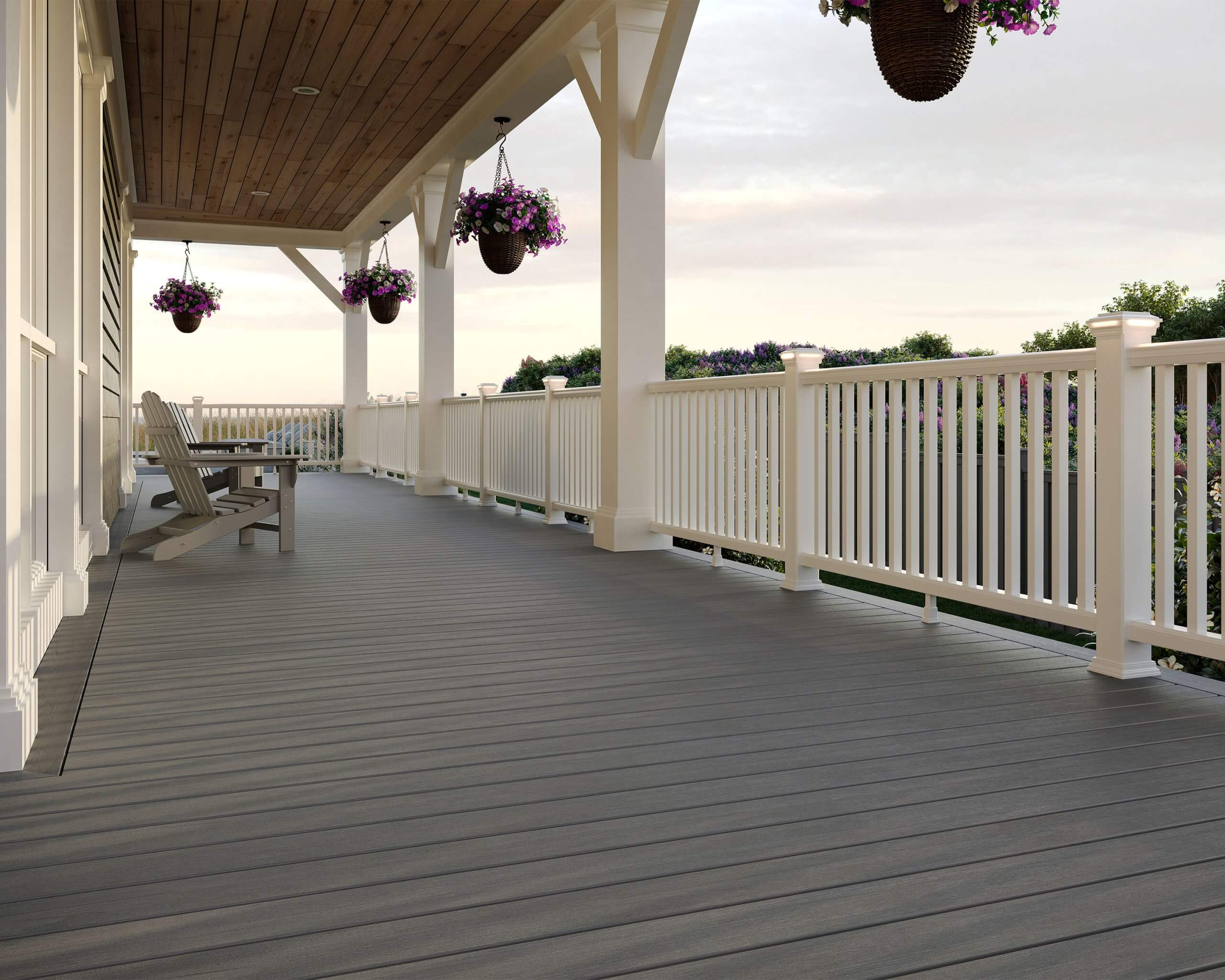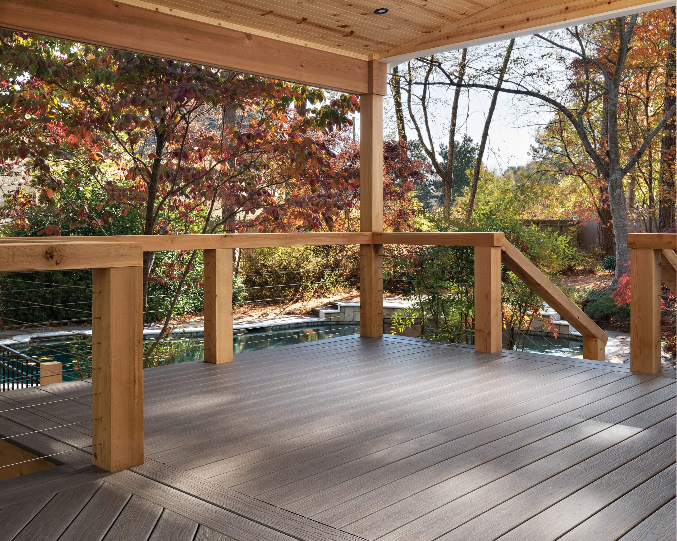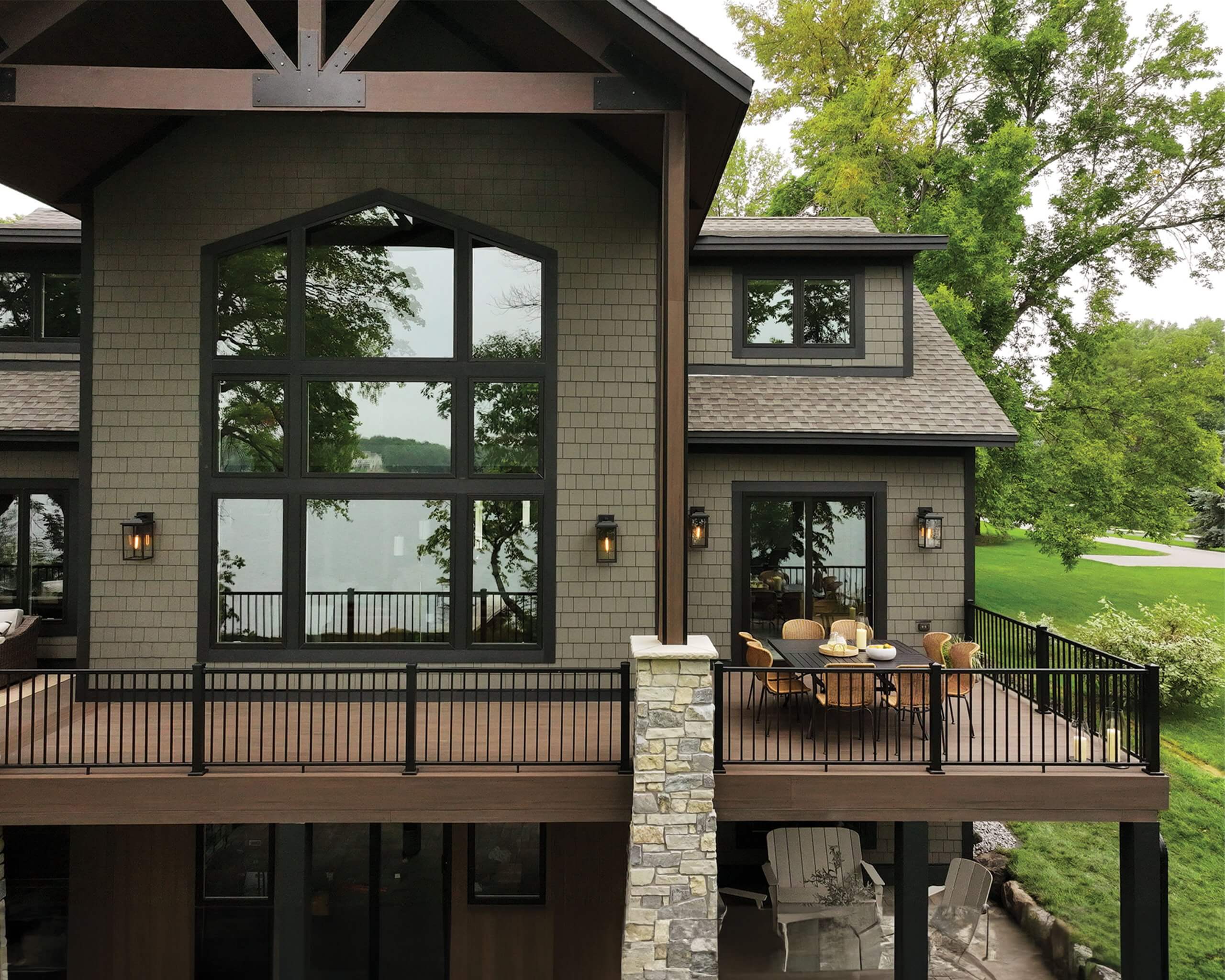 When matching composite decking and railing systems, Morrison sees lighter shades and multi-chromatic deck boards paired with matte black railing systems as the most popular combination.