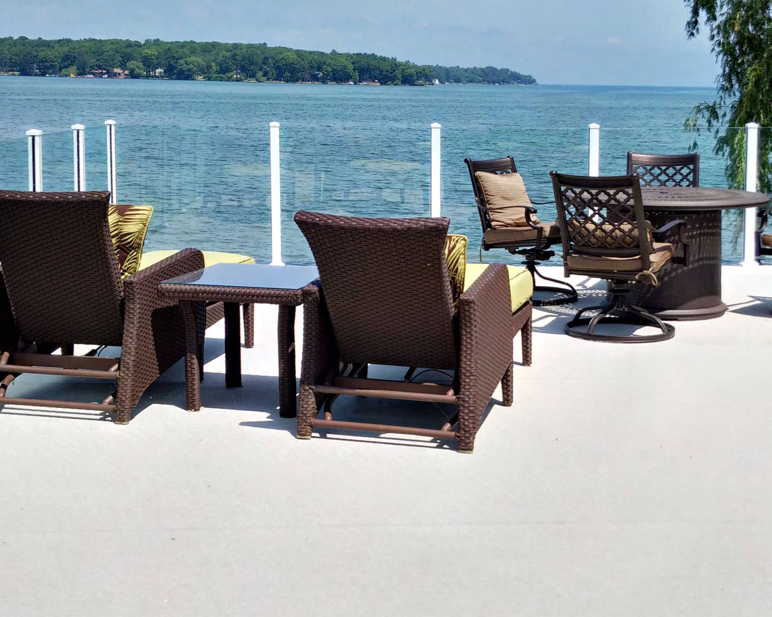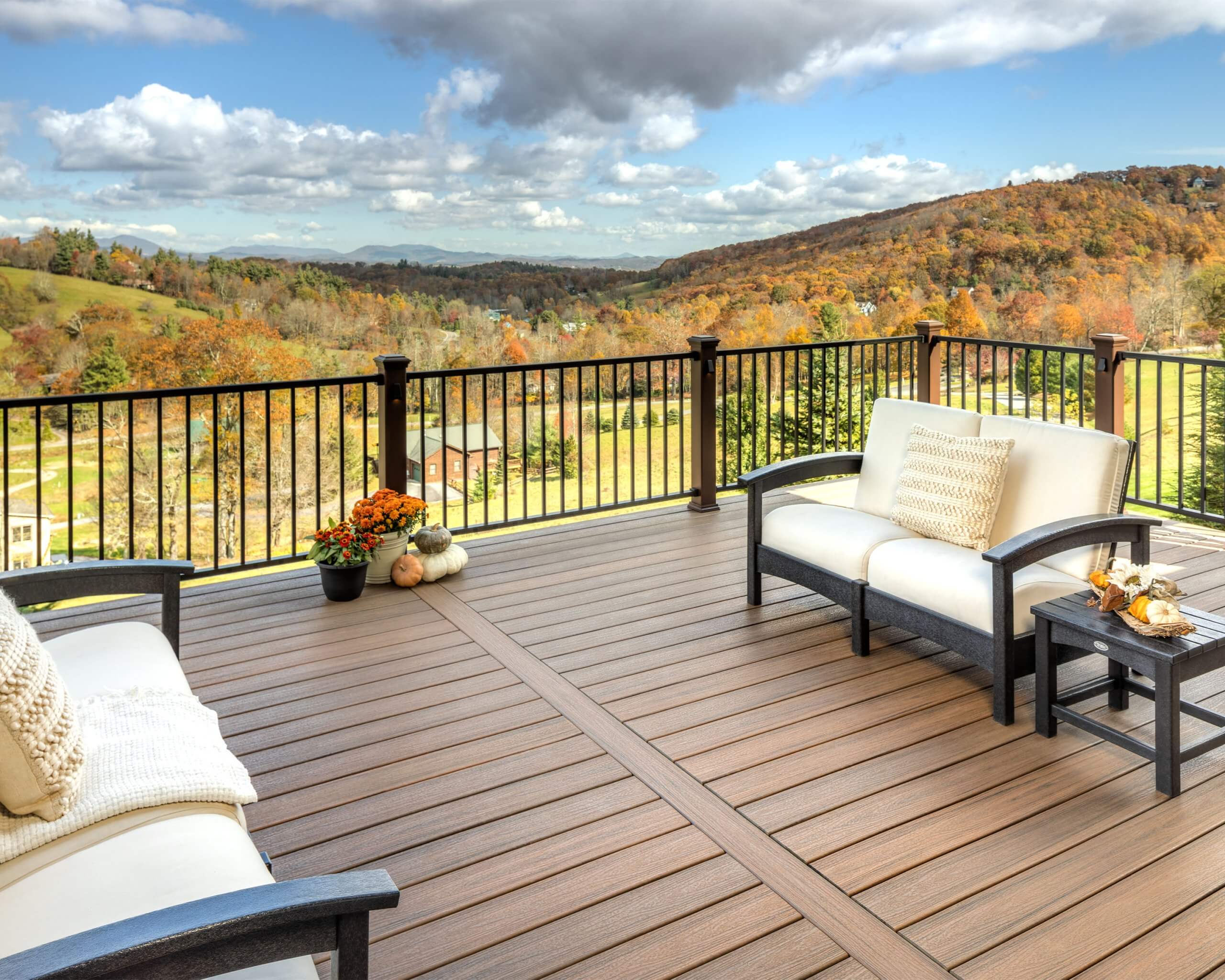 “Aluminum railing is still the most popular choice to surround a Timber Tech deck,” said Lipskey. Homeowners desire a modern, sleek top rail with a satin finish and slim posts to increase visibility. Glass railing panels are also a popular choice. People want to see what’s beyond the rails; they don’t want to see the rails.”