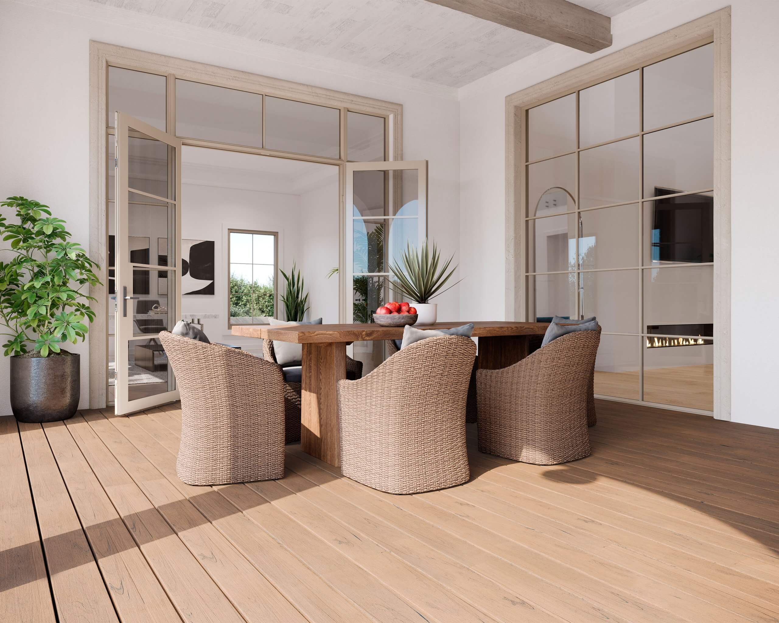 “Light browns with a grey undertone and a weathered-stressed grain are becoming increasingly popular. The weathered look offers a less uniform pattern and a more natural appearance.”