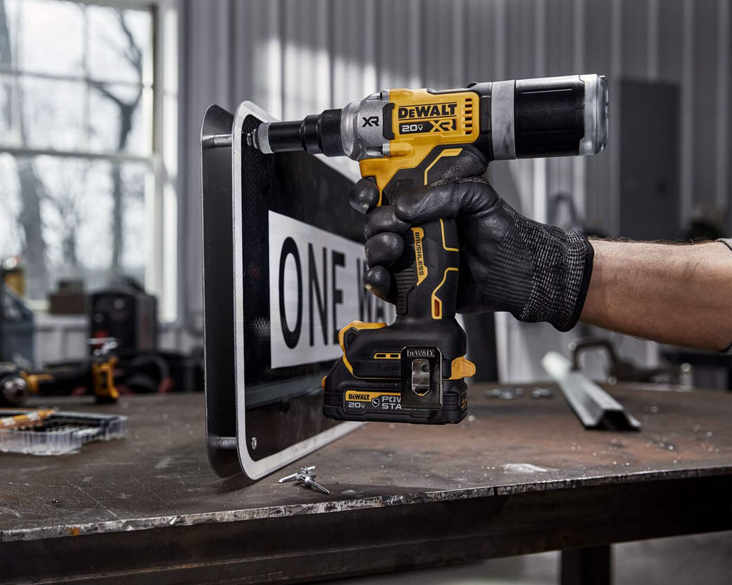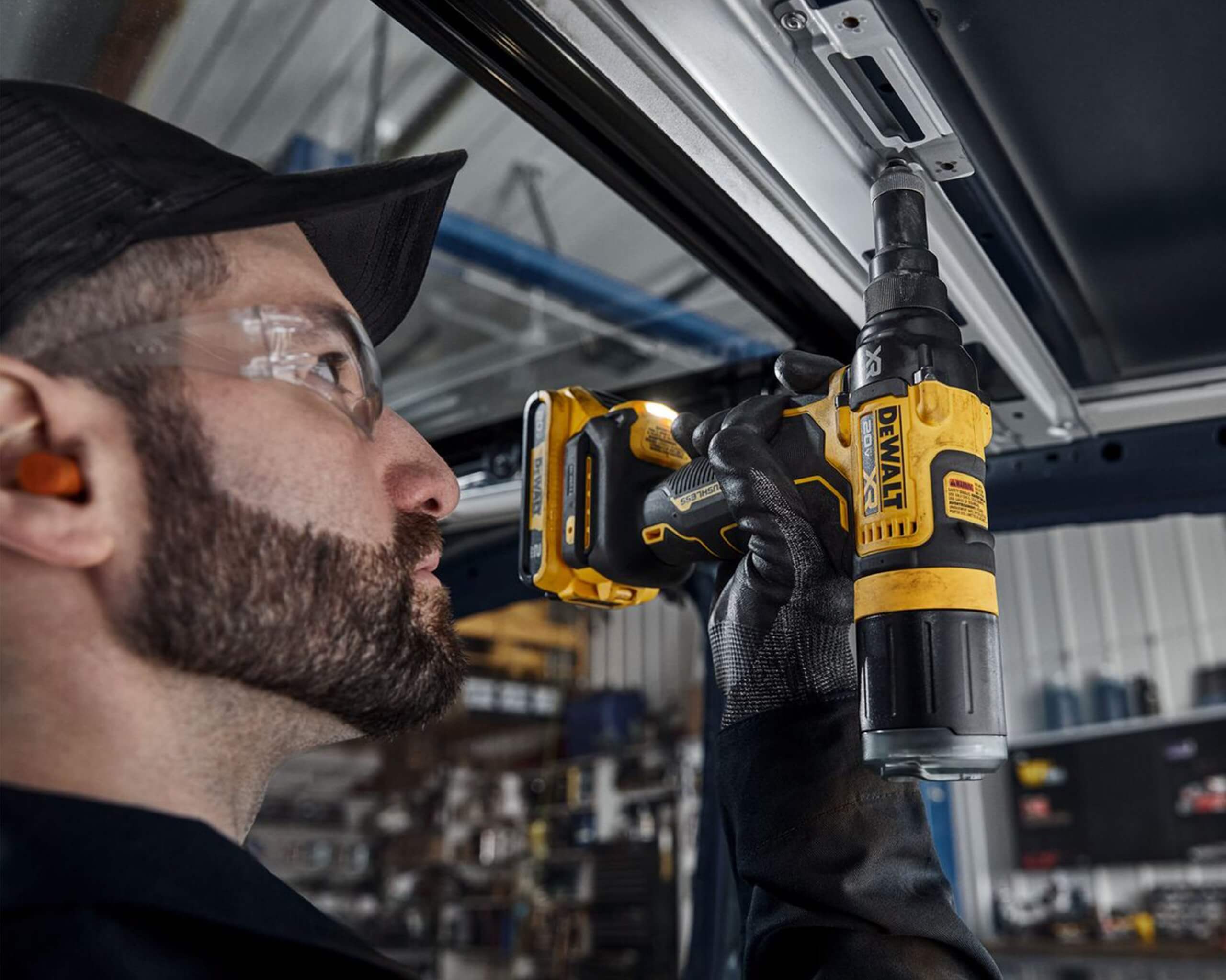 Steve Whidden, marketing manager for Power Tools at Stanley Black & Decker GCX Canada, points to his company’s new line of DEWALT 20V MAX* XR Brushless Cordless Rivet Tools as one tool he thinks fits the bill.