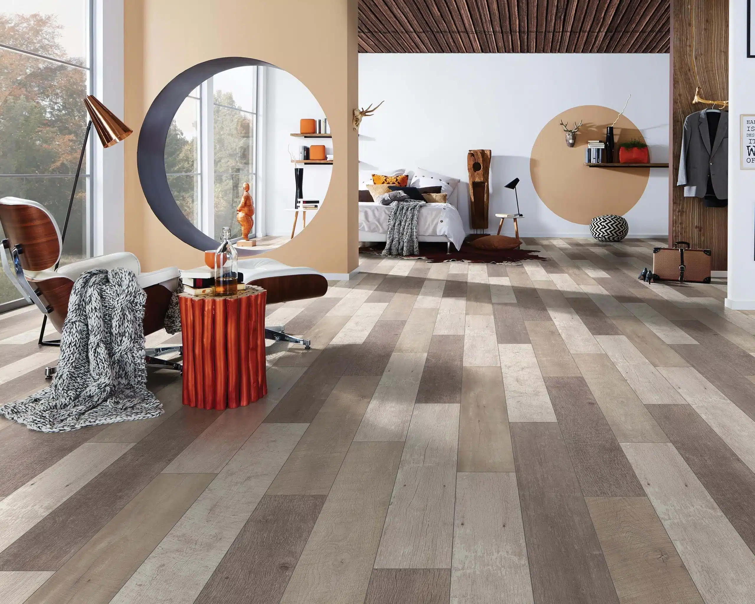 « Les consommateurs de plancher stratifié achètent des produits plus “audacieux” sur le plan de la couleur et de la largeur », ajoute-t-il. Actuellement, les planches larges et à largeur variable sont populaires. Les tons de gris chaud et de brun (populaires dans le bois et les carreaux de vinyle de luxe) sont toujours présents, mais M. Morrison indique que les consommateurs commencent à passer à de nouvelles couleurs plus « osées ».