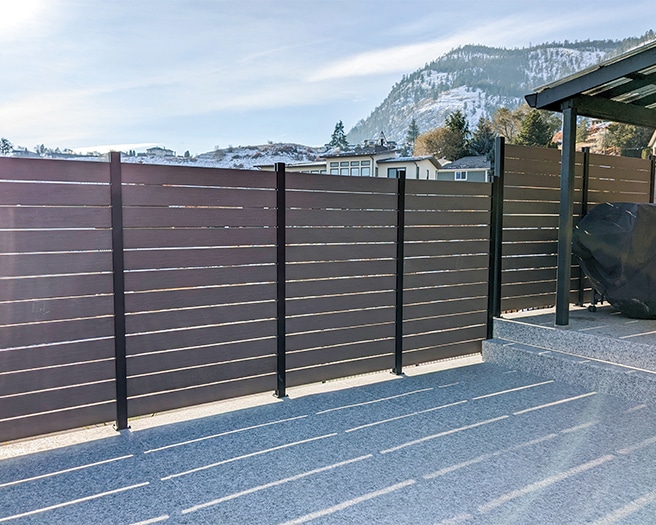 Century provides three core railing colours: textured matte black (the most popular), gloss white, and textured lakeside copper. The company also offers seven premium colours that must be ordered in advance, as well as custom colours.