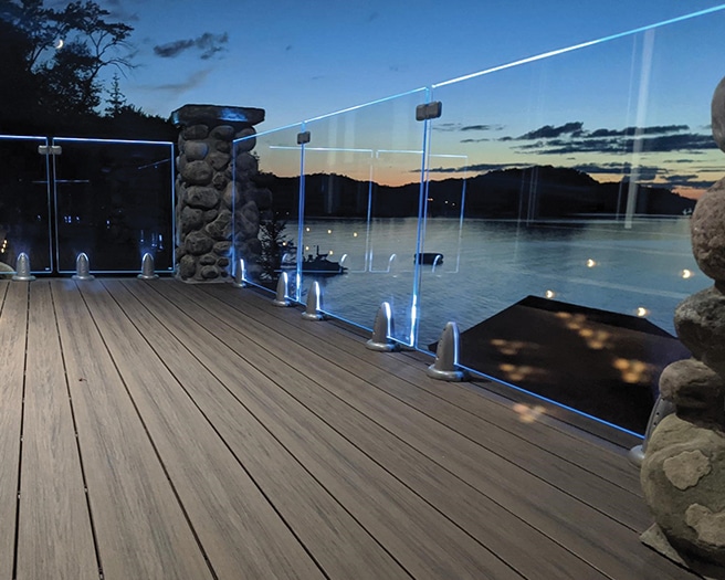 “It fits into our railing channel and it shines down onto the railing to create a perimeter glow. It creates such a nice ambience; it’s breathtaking,” said Pantelides. “We are selling way more high end systems with LED than in the past. Homeowners want to show it off. CrystalRail is like jewelry for the deck.”