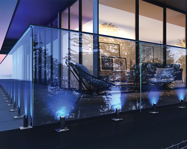The company has also made its low voltage LED lighting system available for its picket and tempered glass rail systems, with three colour and brightness settings.
