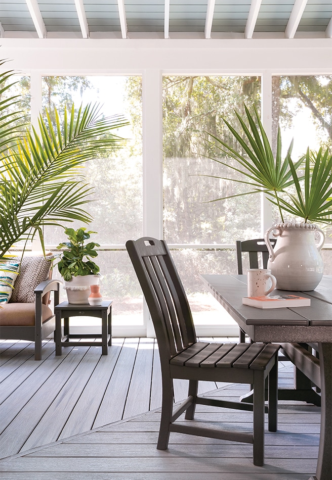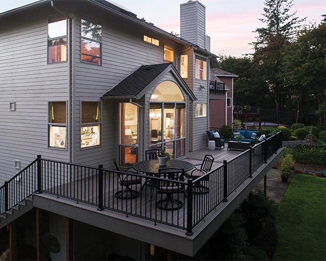 Finally, Trex reports that homeowners prioritize sustainability. All Trex decking products are made from up to 95 percent recycled materials, with composite railings made from 40 percent recycled products and aluminum railings containing a minimum of 40 percent recycled content.