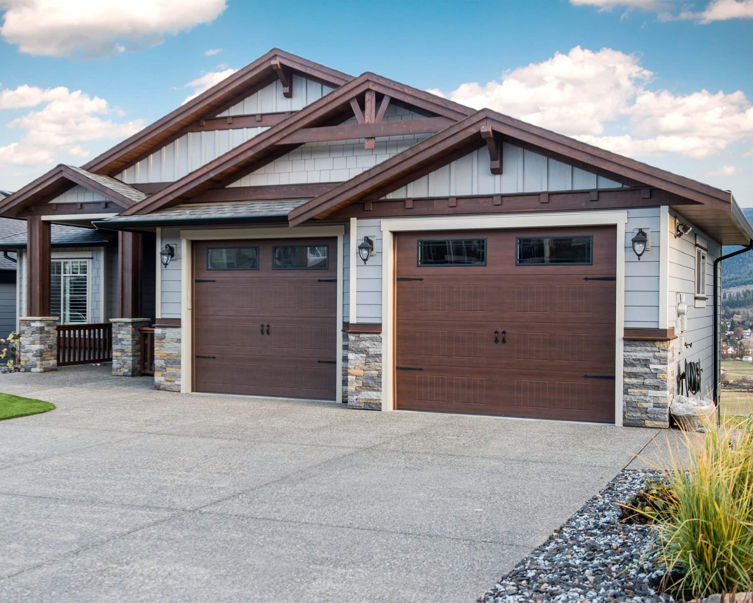 A high-impact garage door hints at more great things inside. No longer an afterthought, homeowners are opting for doors that are both durable and stylish. “We’ve noticed the residential industry continues to move towards deep colour tones with woodgrain finishes,” says Cara Tenderenda, Director of Communications, Steel-Craft Door Products. She says natural tones—including walnut and cedar woodgrains—as well as a deep charcoal shade with a reflective coating have been particularly in demand.