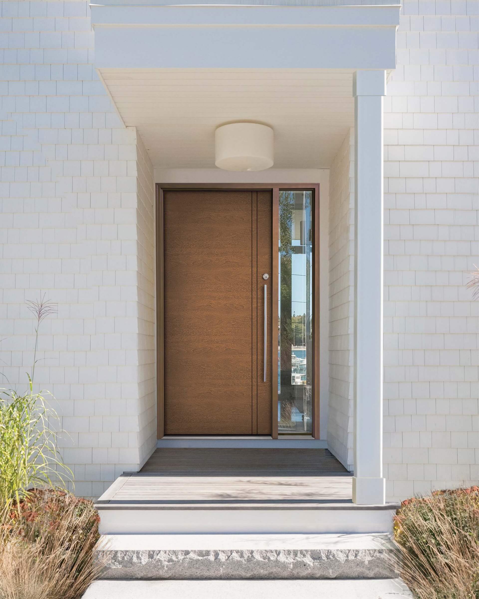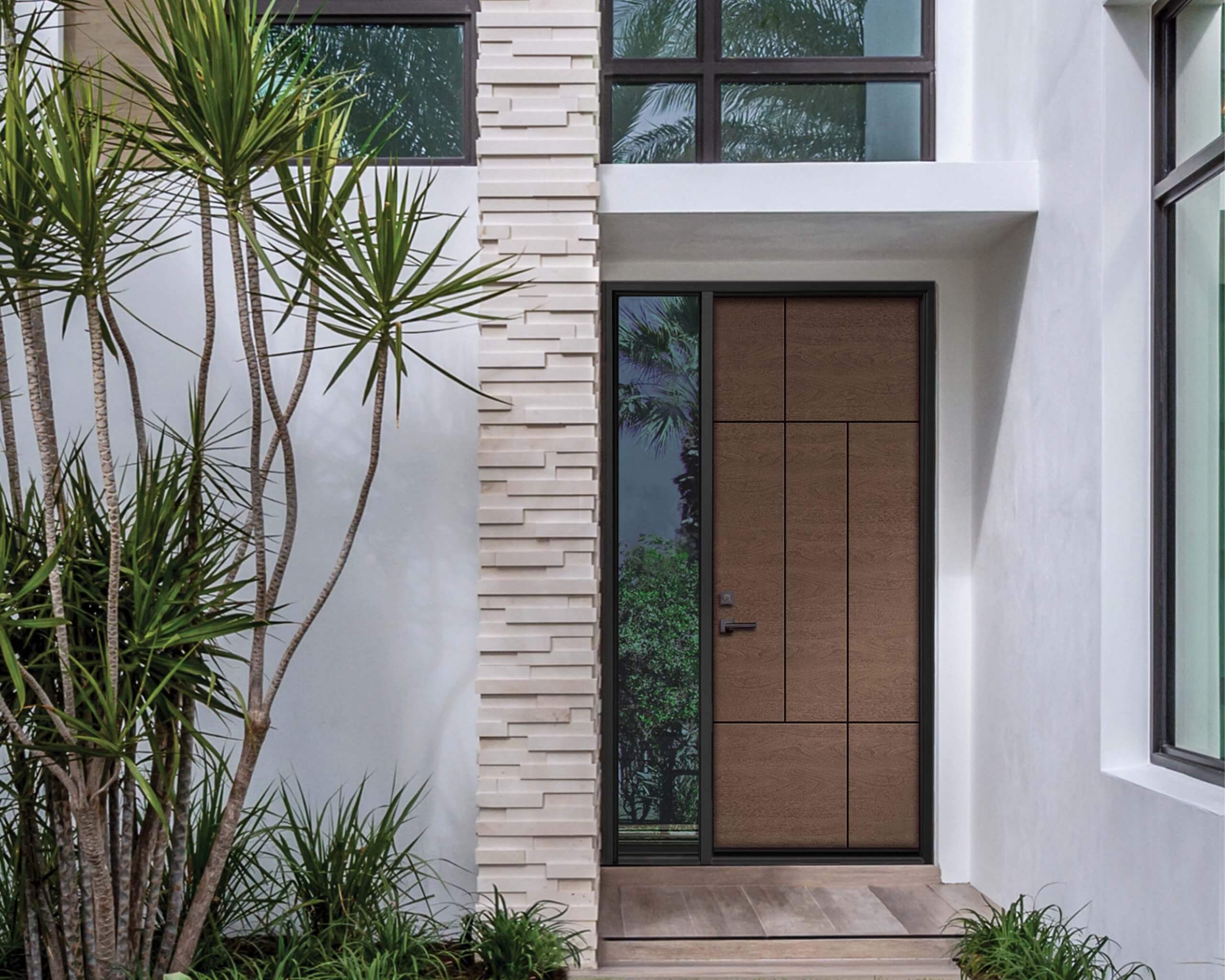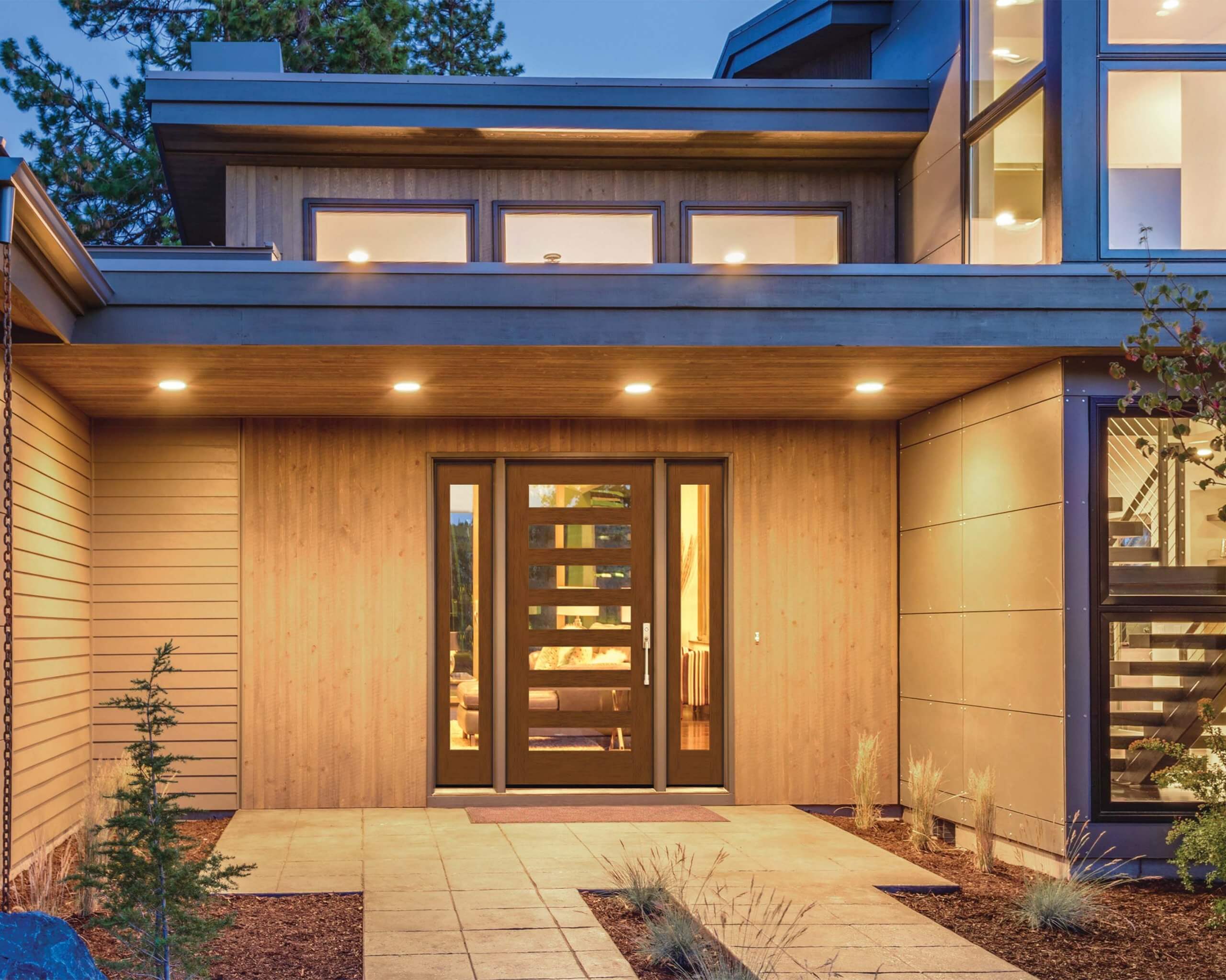 “We take a flat panel fibreglass door – be it walnut, mahogany, fir or oak grain – and router out design patterns that can also match and complement the interior doors that the consumers have in their house,” explained Lauren Sabeski, the company’s business development manager, exterior doors. “The result is a modern flair with sleek lines and forward-thinking design; it’s truly contemporary.”