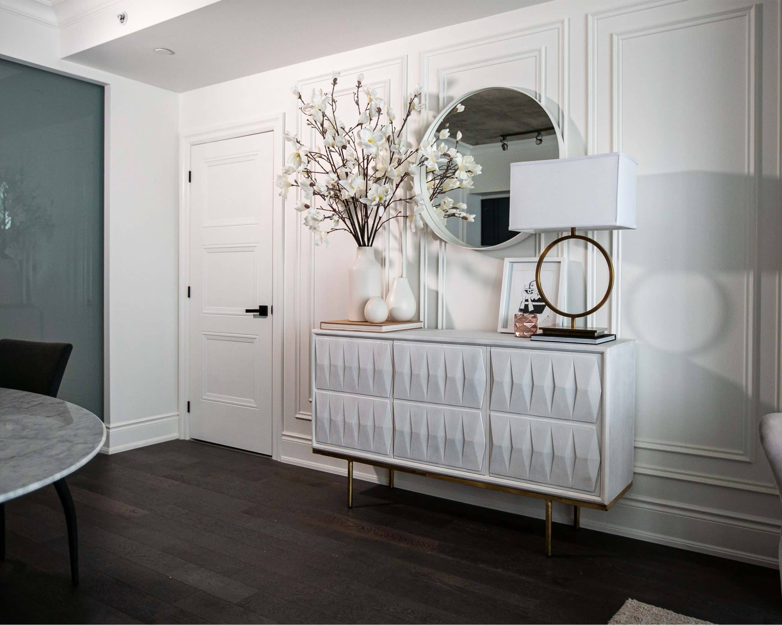 She says today’s moulding choices, some of which are impressive wall treatments, add a sense of texture and “warmth” to the room, so it doesn’t feel stark, but leaves it feeling very clean.