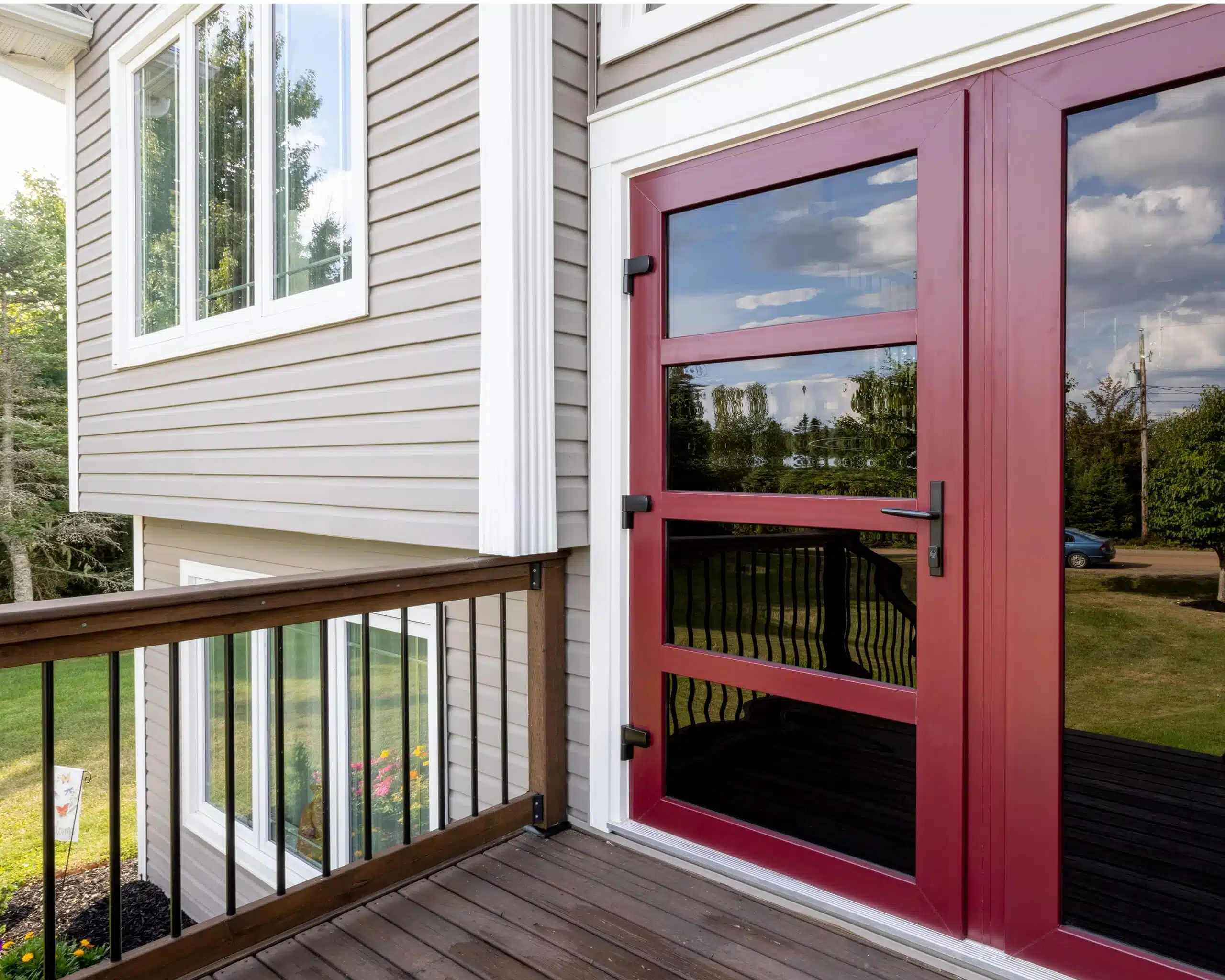 “Contrasting colour pop doors are gaining popularity as a statement against monochrome windows and siding. We see a lot of bright oranges, yellow, turquoise, and even shocking pink.”