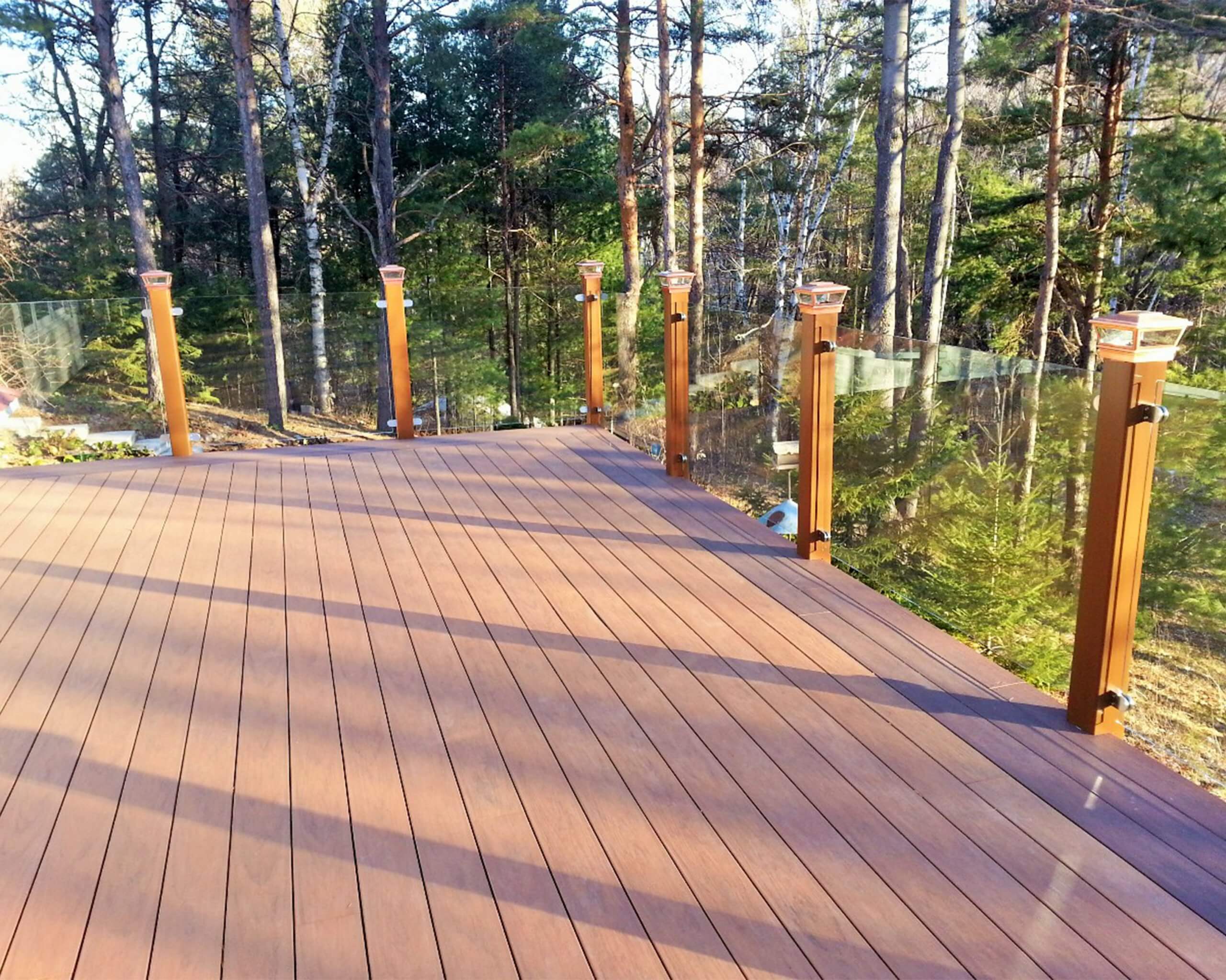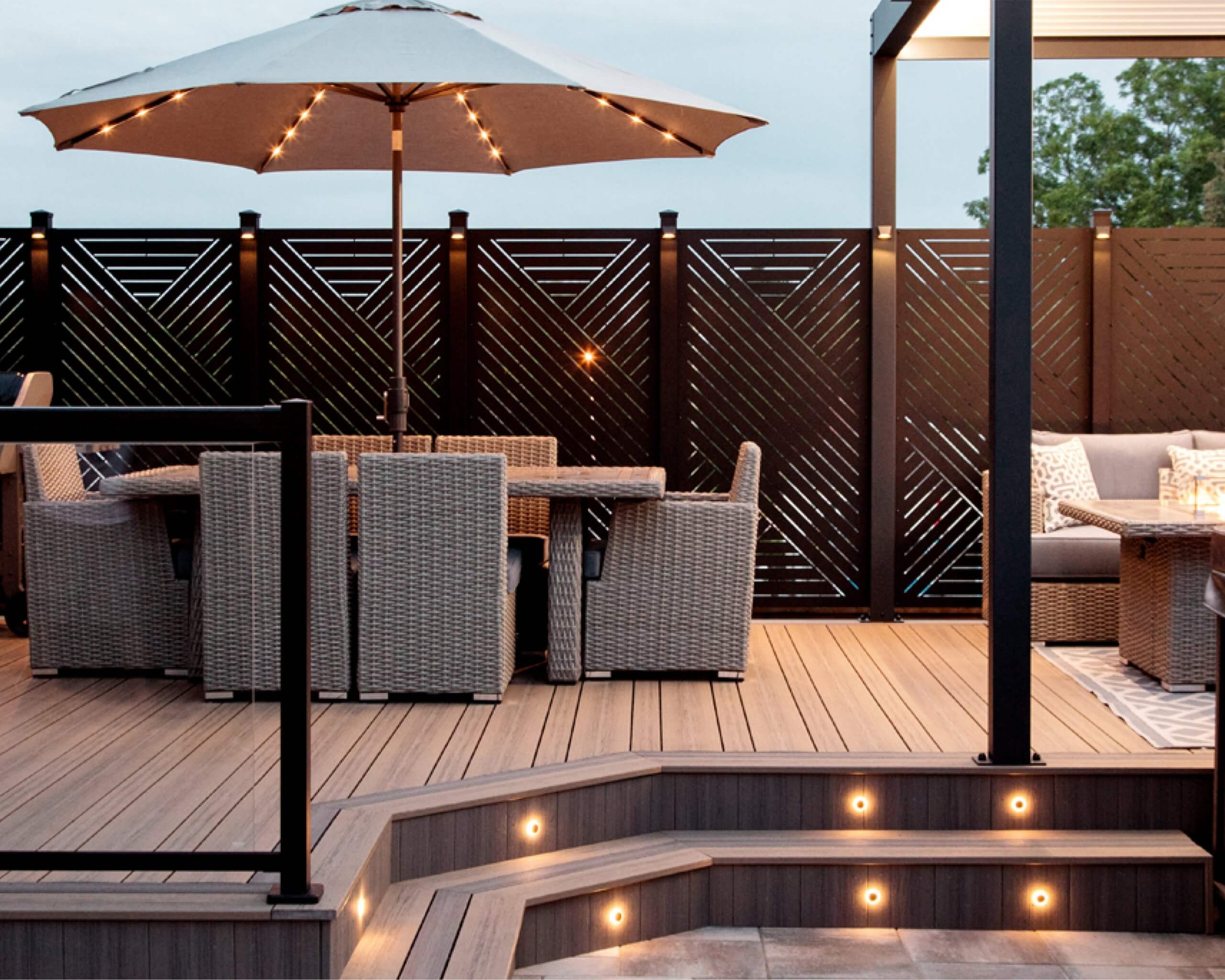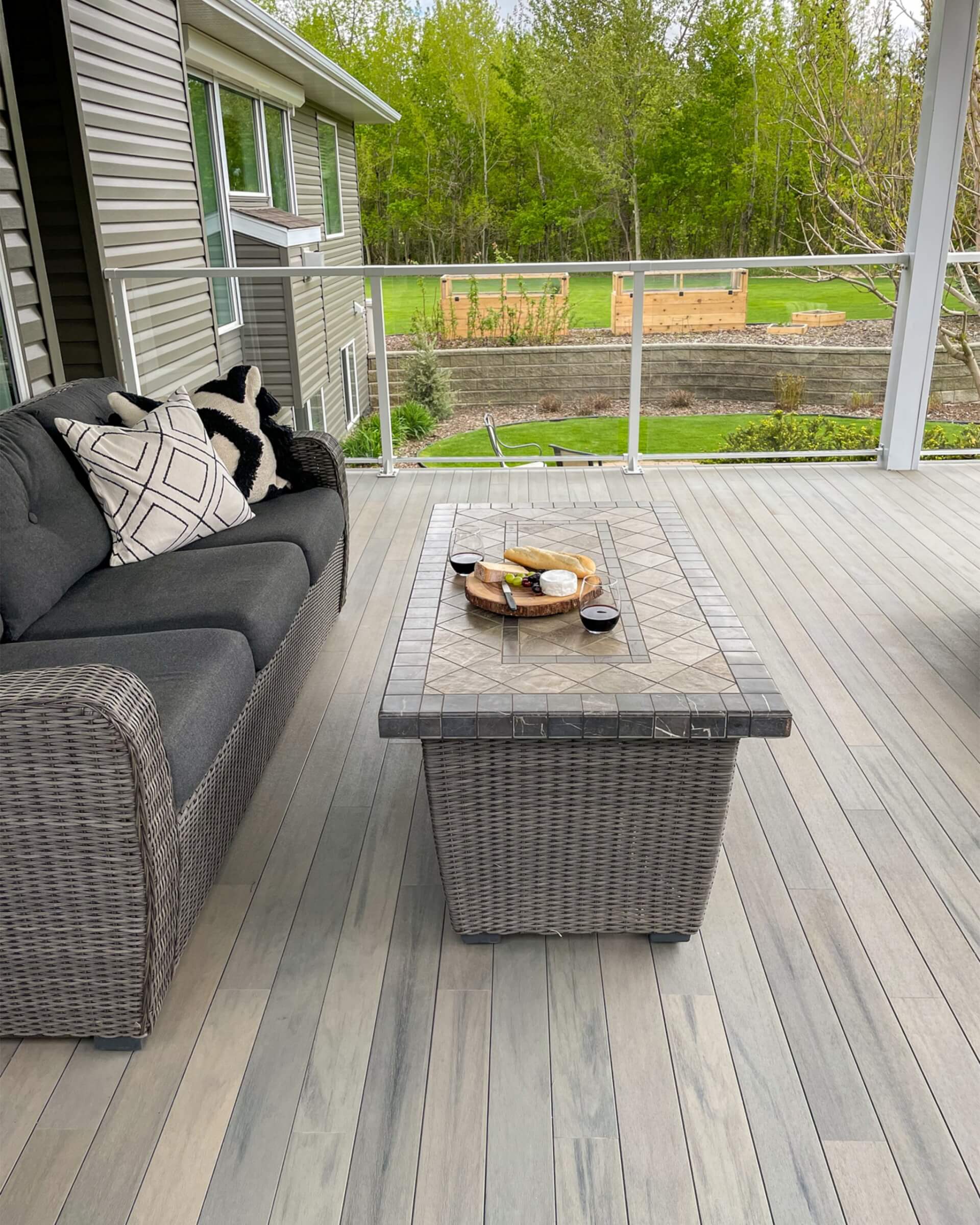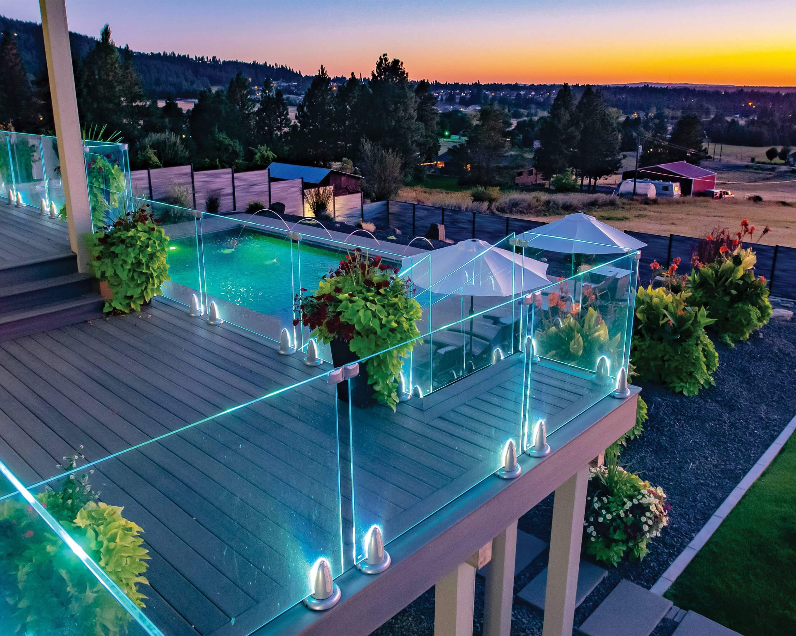 Even when privacy isn’t an issue, the posts-and-glass combination is being used with clear glass to block the wind. This is especially popular, Scott notes, in the wind-heavy Prairies. “Now you can spend your time on your deck and play cribbage with your sweetheart and you don’t have to go chasing the cards because they’ve blown off your deck.”