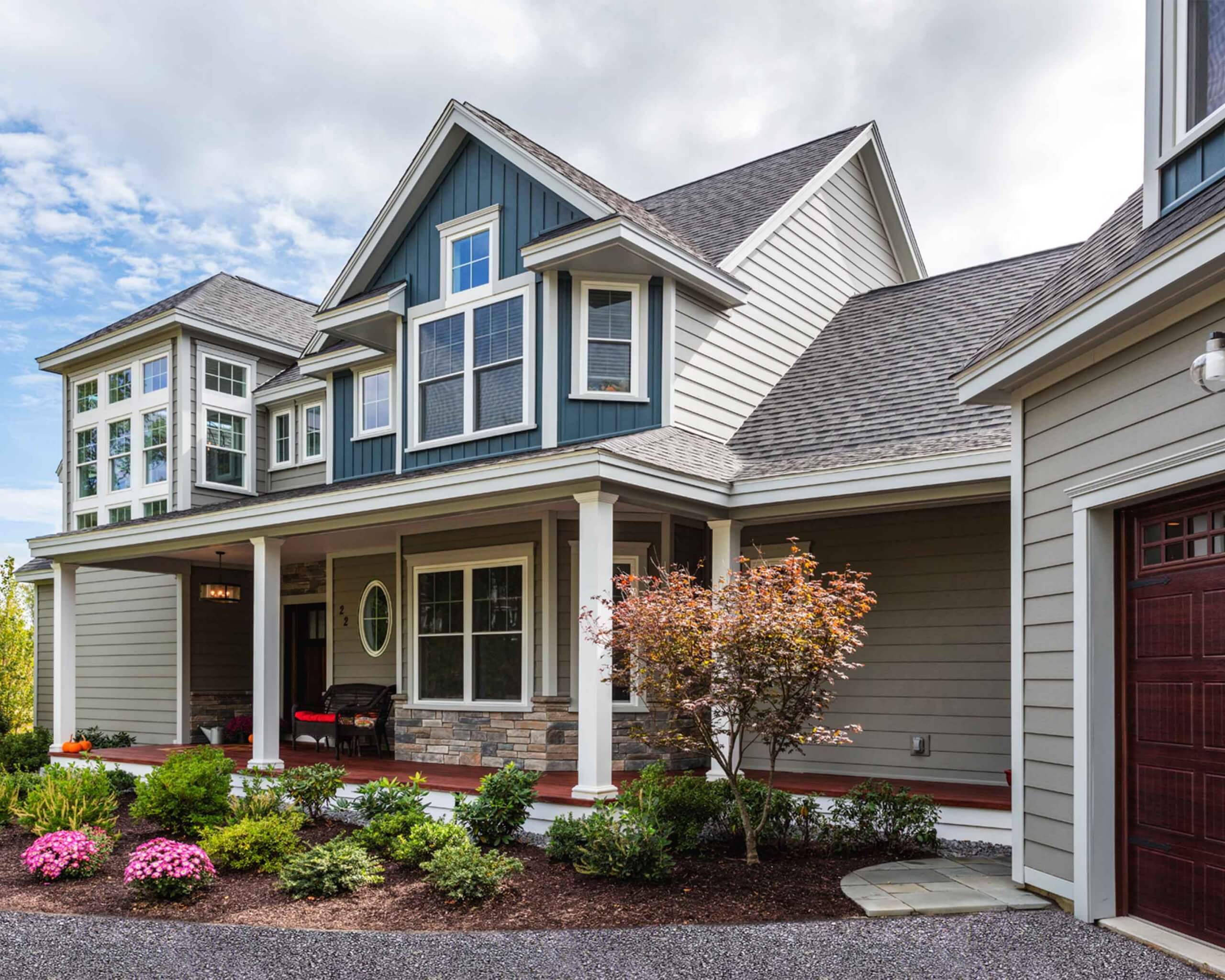 “The trend is to use no less than three complementary siding materials,” he said. “For example, most new homes or renovations consist of a stone skirt, siding up the wall and shake used in the gables.”