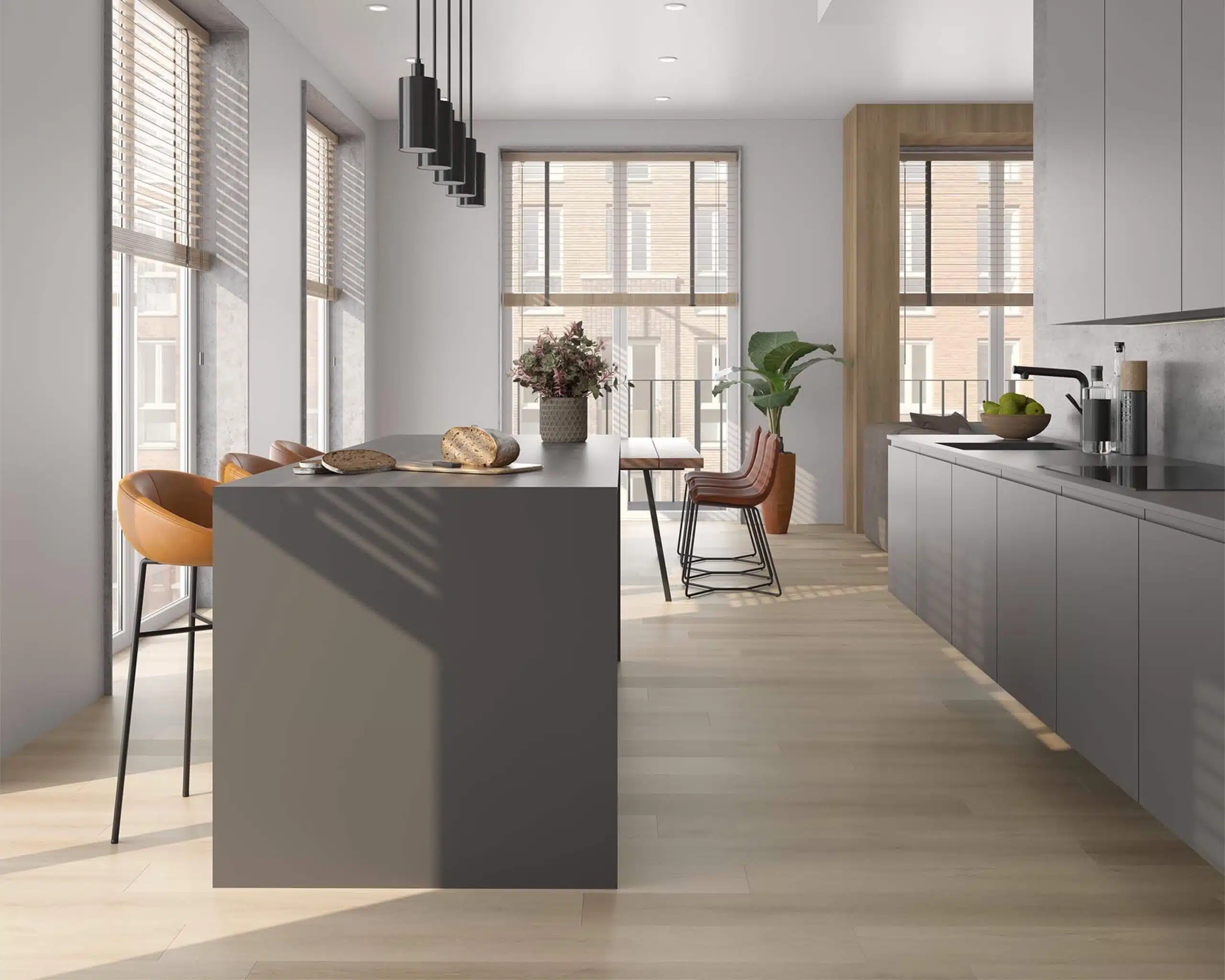 As aesthetics go, it may be no surprise that wood grains and natural tones continue in popularity, and the trend towards wider planks or tiles continues in hard surface flooring. Lighter, warmer tones and greys with a touch of brown or beige (“greige”) are popular.