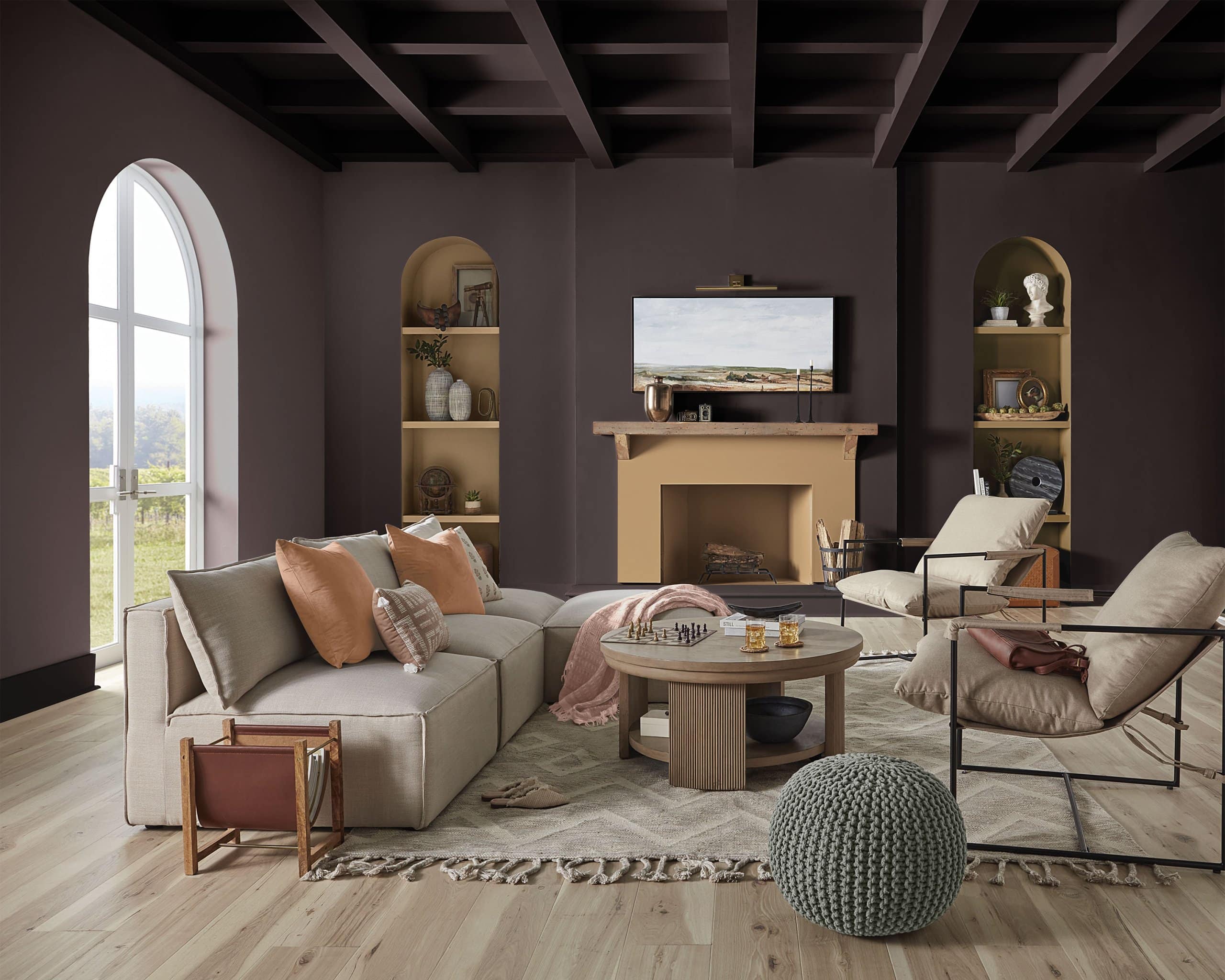 While interior cool greys are fading in popularity, charcoals and dark greys remain popular for exterior paints and stains, according to Collet. “They offer a modern, sleek look, often paired with warm wooden accents or natural stone.”