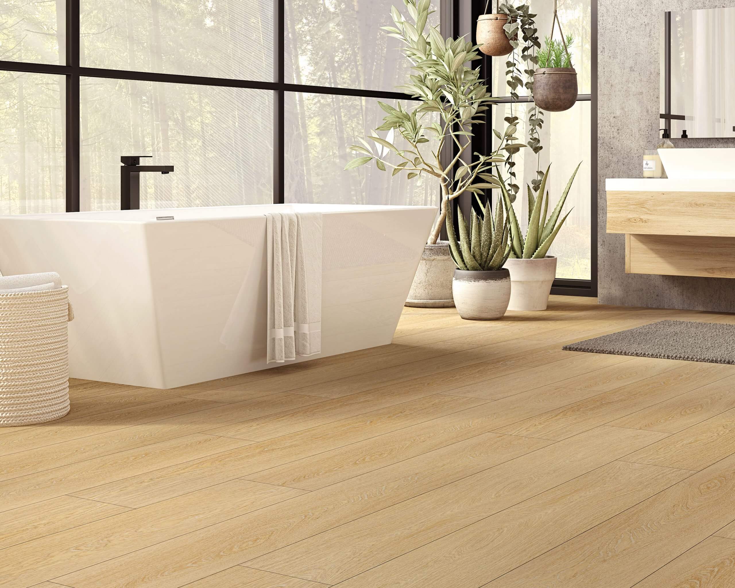 La grande tendance actuelle est aux nuances terreuses et aux couleurs neutres, disent les experts. On l’observe dans les produits d’AFA, qu’il s’agisse de stratifié (comme la collection Renaissance) ou de SPC (comme la gamme Volcano).