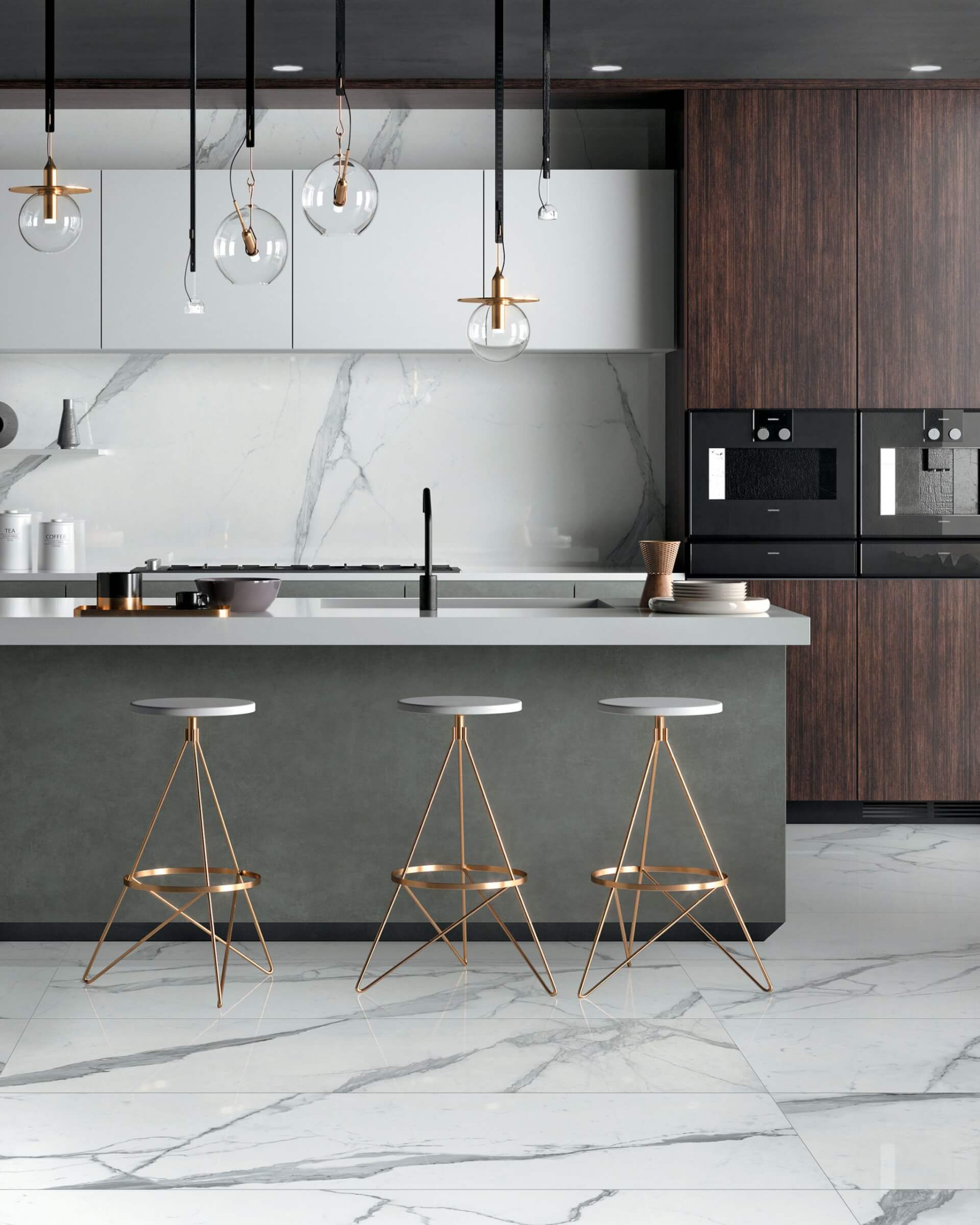 « Maintenant, les carreaux sont pour la plupart imprimés. Ils recréent l’apparence d’un matériau véritable, mais avec une performance améliorée, dit-elle. Ce qui est merveilleux, c’est que l’on peut maintenant les chauffer à l’aide d’un sous-plancher. Le sol n’est donc plus nécessairement froid. »