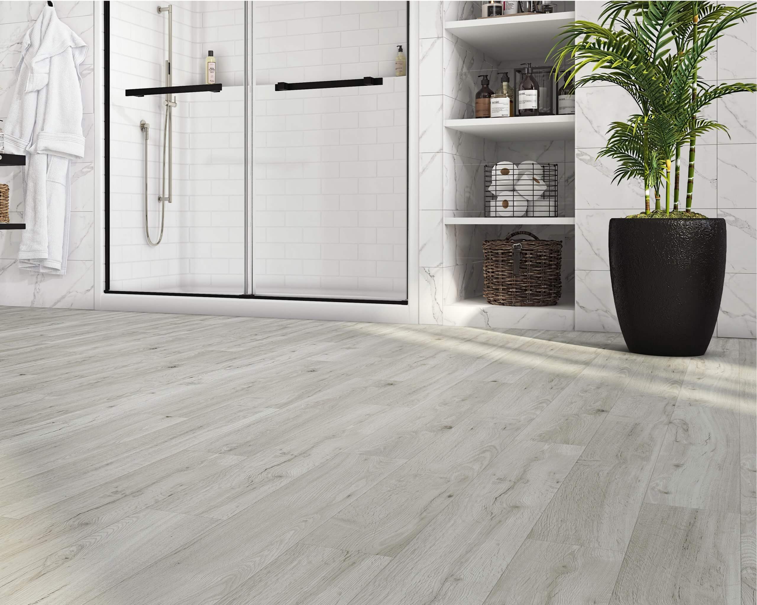 “When looking at renovation, quite often there’s the entranceway, front door, mud room at the back, powder room, etc., to consider. One way to create an impressive look is by doing the entire level of the house in the same SPC flooring,” he says. “This gets rid of the ‘chopped up’ look, and makes the house look larger, creating a very comfortable modern living space. And it can be done on a budget.