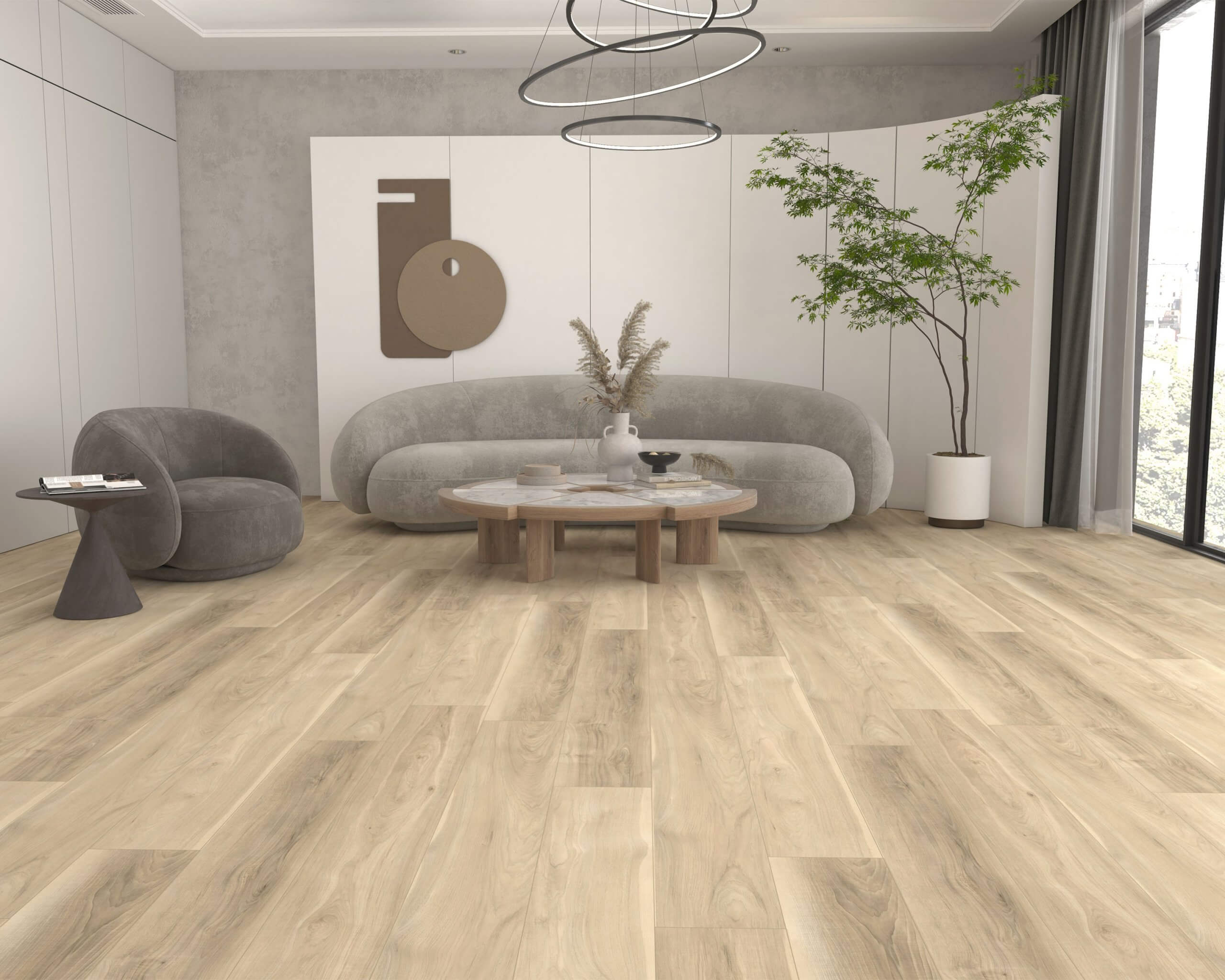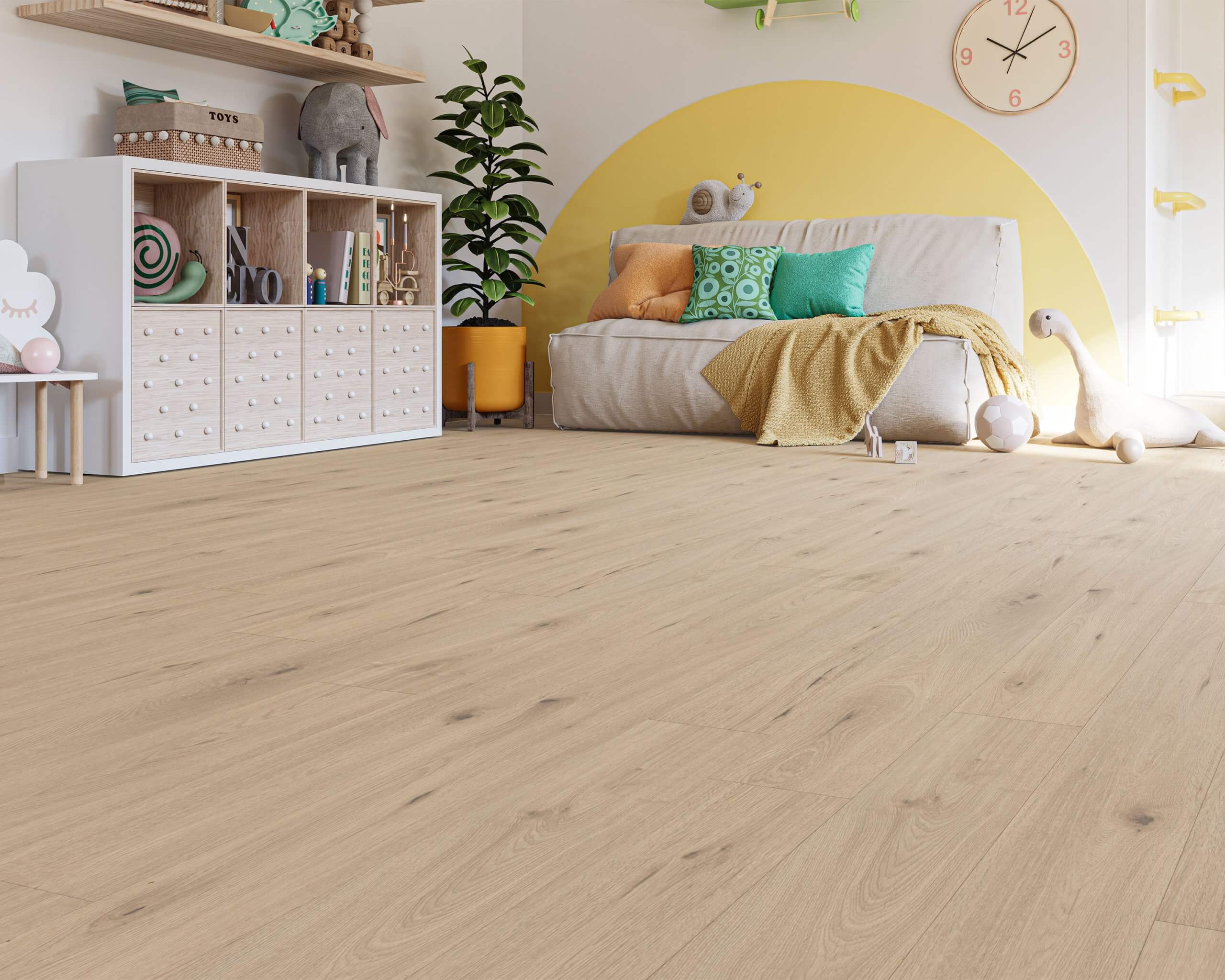 “It’s definitely been lighter over the past three years, but that could have been light greys or a beechwood tone. The idea is realistic or realism; instead of being sanded and stained, floors with natural characteristics of the wood: knots and streaks.”